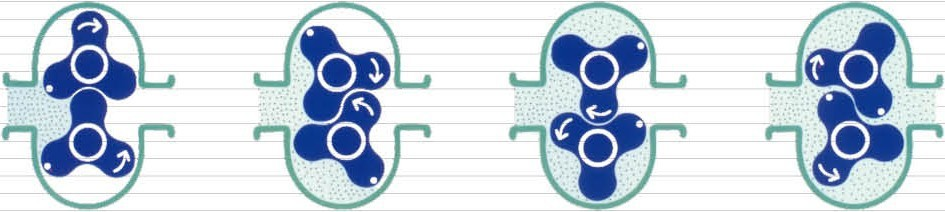 該產品采用兩個同步運轉的轉子,轉子由箱體內一對同步齒輪進行傳動,轉子在主,副軸的帶動下進行同步反方向旋轉使泵的內腔發生變化、從而構成了較高的真空度和排放壓力,更適合衛生級和帶有腐蝕性高粘度介質的輸送。